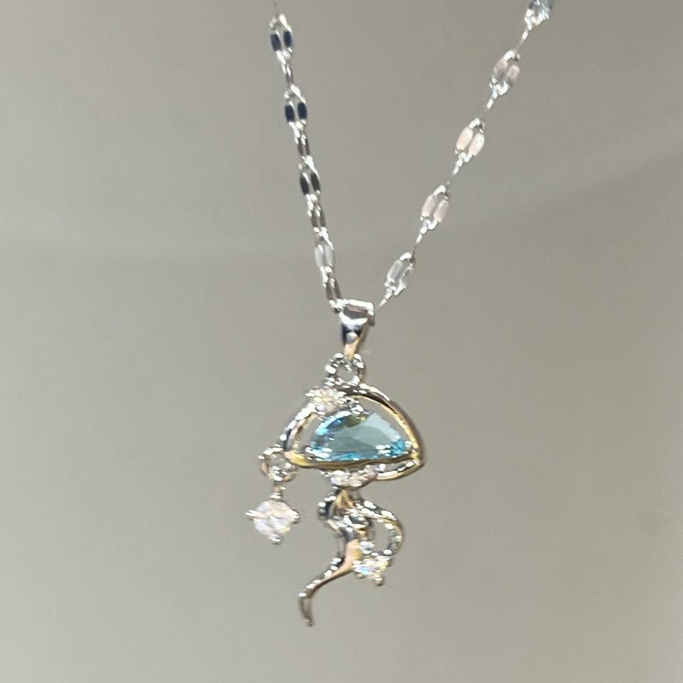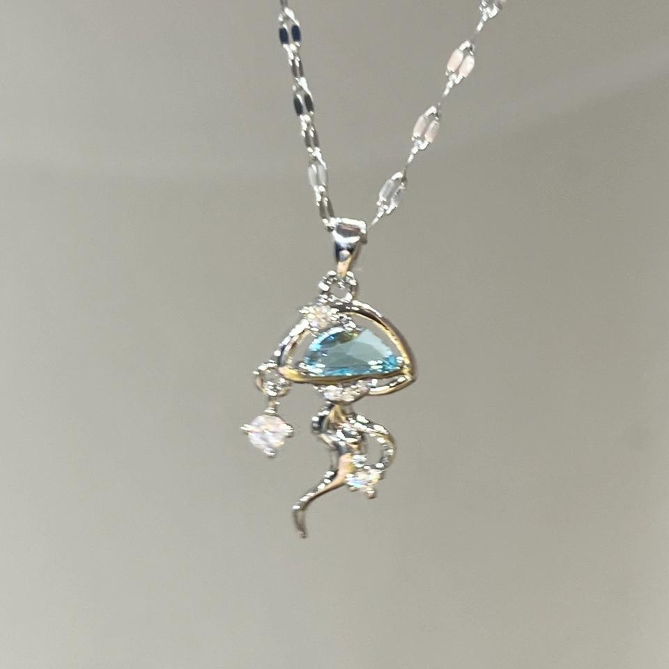 S925 Pure Silver Elegant Pearl Sea Blue Water Drop Pendant Necklace Blue Diary Elegant Gold Sweet Home Shi Memorial Treasure