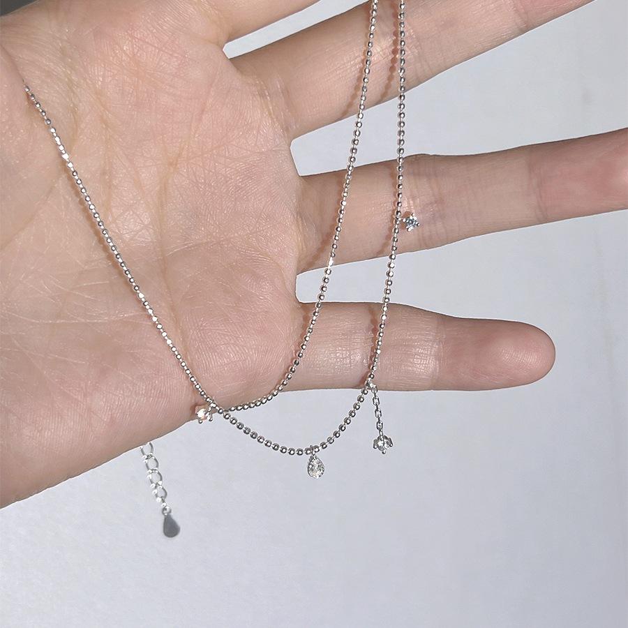 S925 Pure Silver Fairy Cherry Blossom Pink Key Pendant Necklace Luxury Light Crystal for Female for Collarbone Sweater Chain