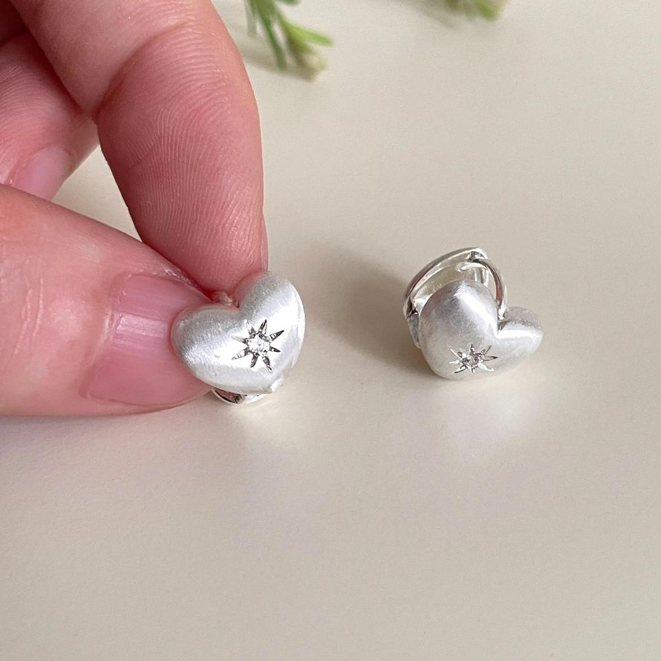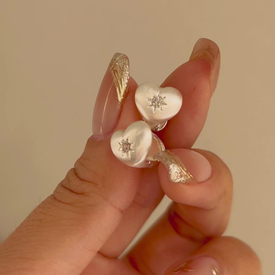 S925 Pure Silver Fine Stud Earrings Japanese Brushed Heart Octagonal Star Design High-End Sweet Niche Feeling