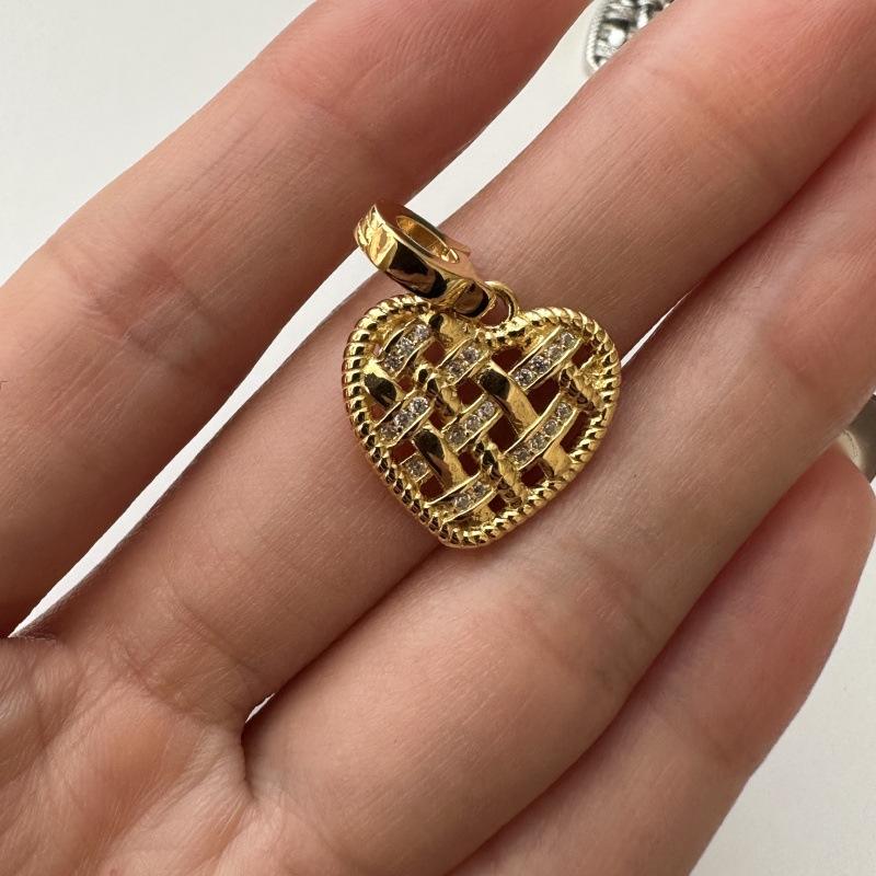 Pendentif en argent pur S925, style rétro français, grille de diamants, design de niche européen américain, incrusté de cœur, pendentif rétro charmant