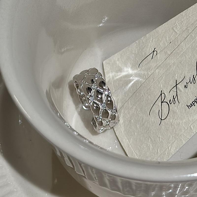 Bague Géométrique en Argent Pur S925 Wenchi, Design Vintage Original, Simple et Tendance, Large, Zircon, Modèle Ouvert Ajustable