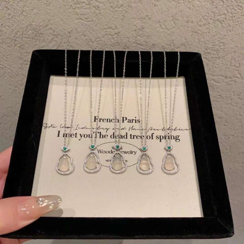Collier à double pendentif en forme de petite gourde en argent pur S925, nouveau collier en jade d'eau bleue naturel chinois, colliers fins
