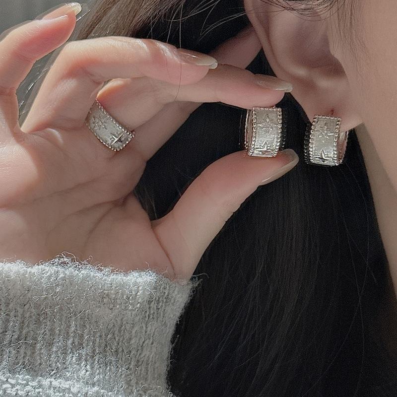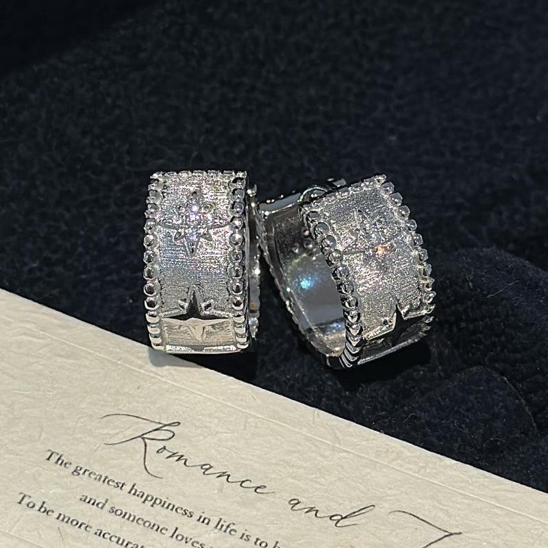 Boucles d'oreilles en argent pur S925, étoile hexagonale, design de niche, simples et élégantes, boucles d'oreilles carrées vintage, matériau or blanc