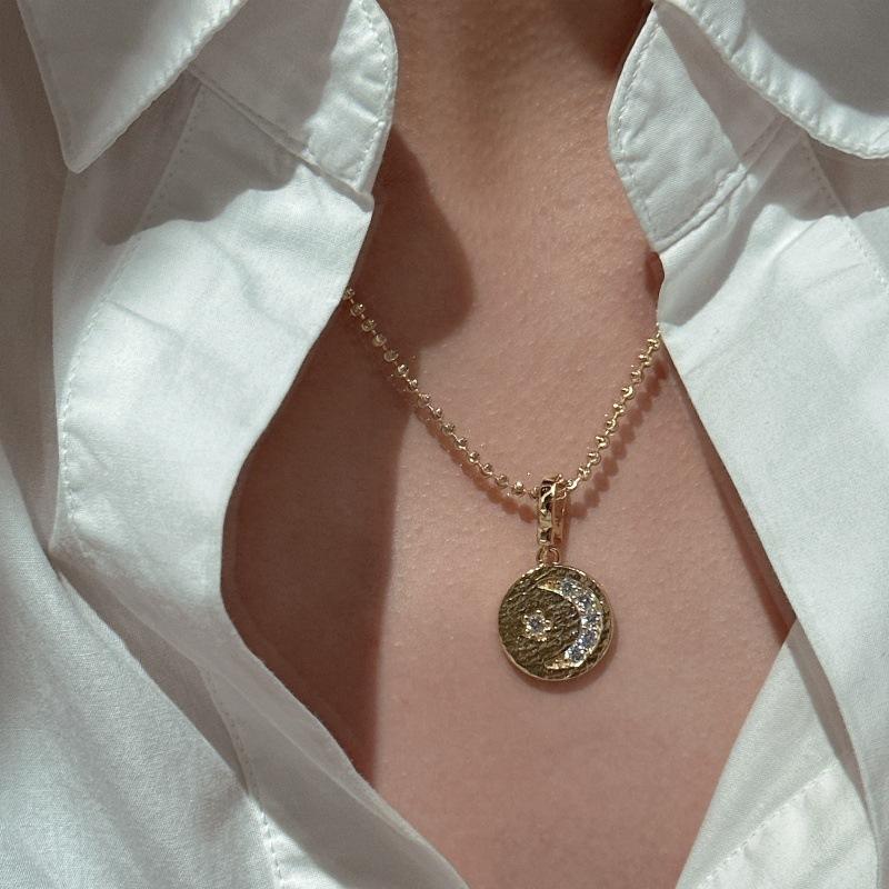 Collier Étoile et Lune en Argent Pur S925, Style Rétro Français Italien, Bijoux Wenchi Chine, Pendentif Diamant Luxe Léger, Breloques