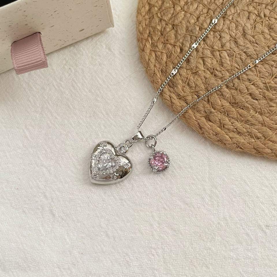 Couleur Argent Faux Unique Pierre Zircon Pierre Coeur Modèle Zircon Collier-2204