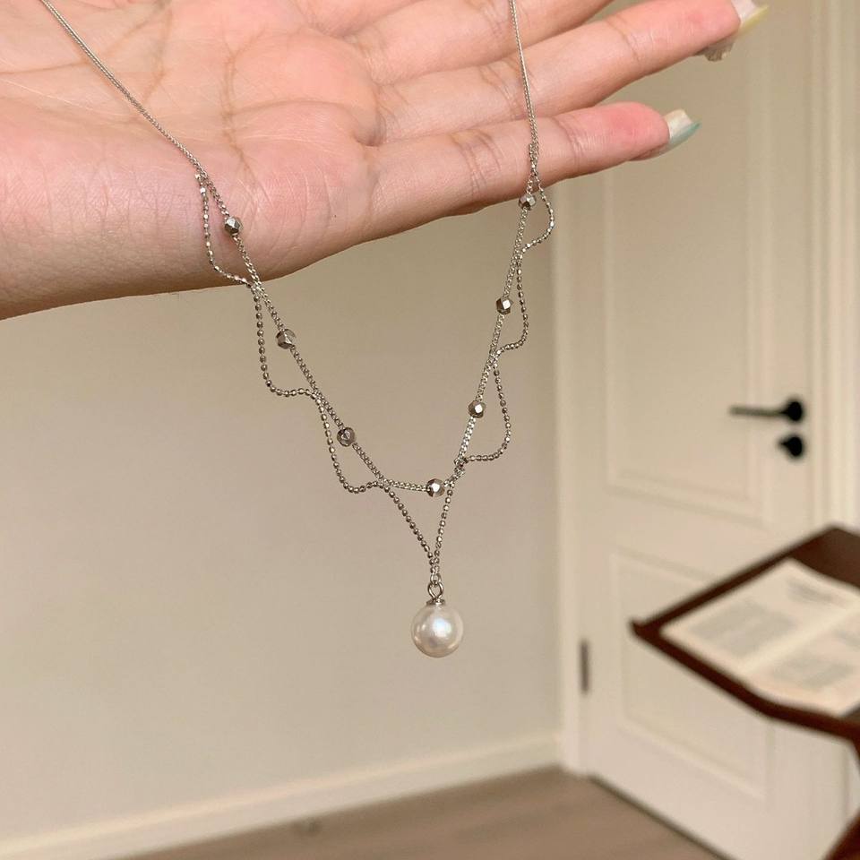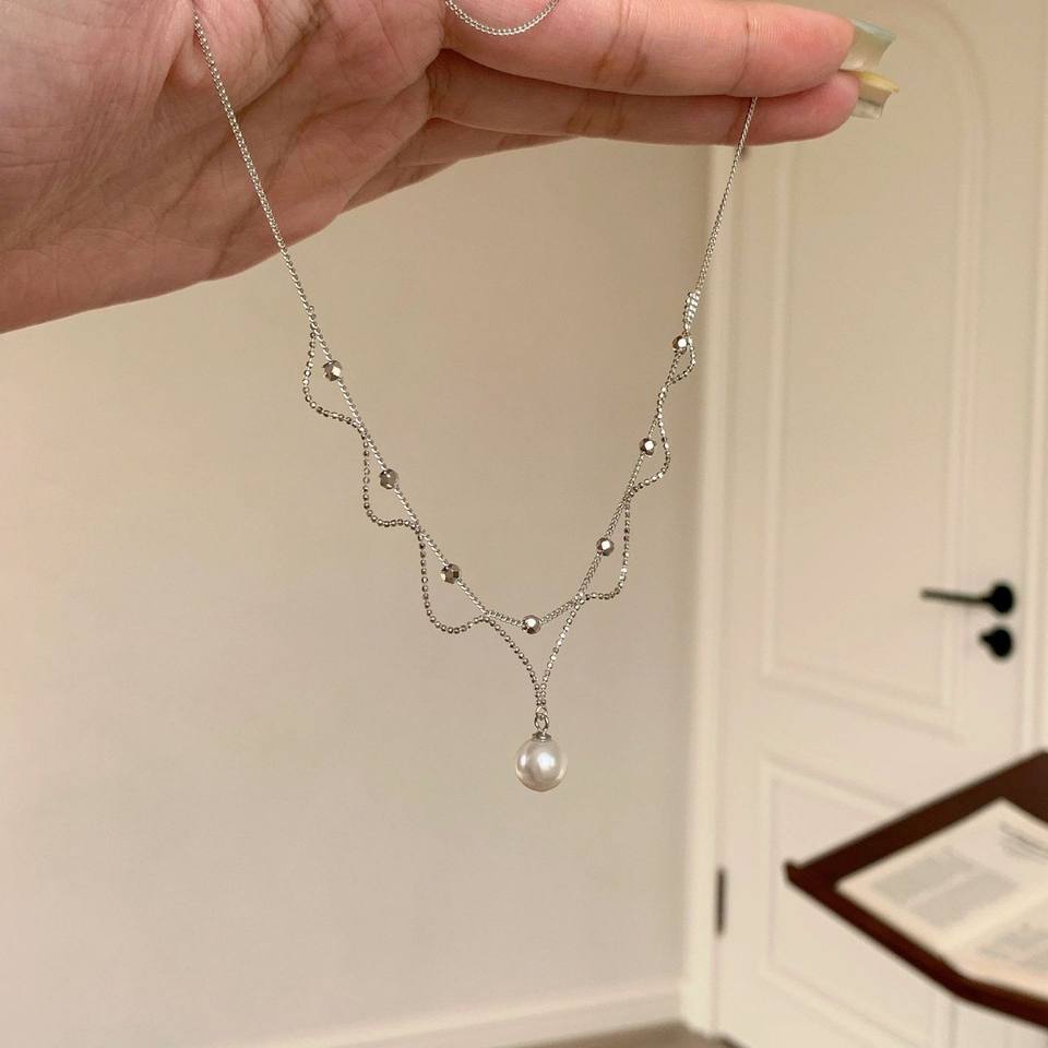 Collier pendentif en argent pur S925 avec dentelle entièrement sertie de diamants et de grandes perles blanches australiennes, élégant et haut de gamme