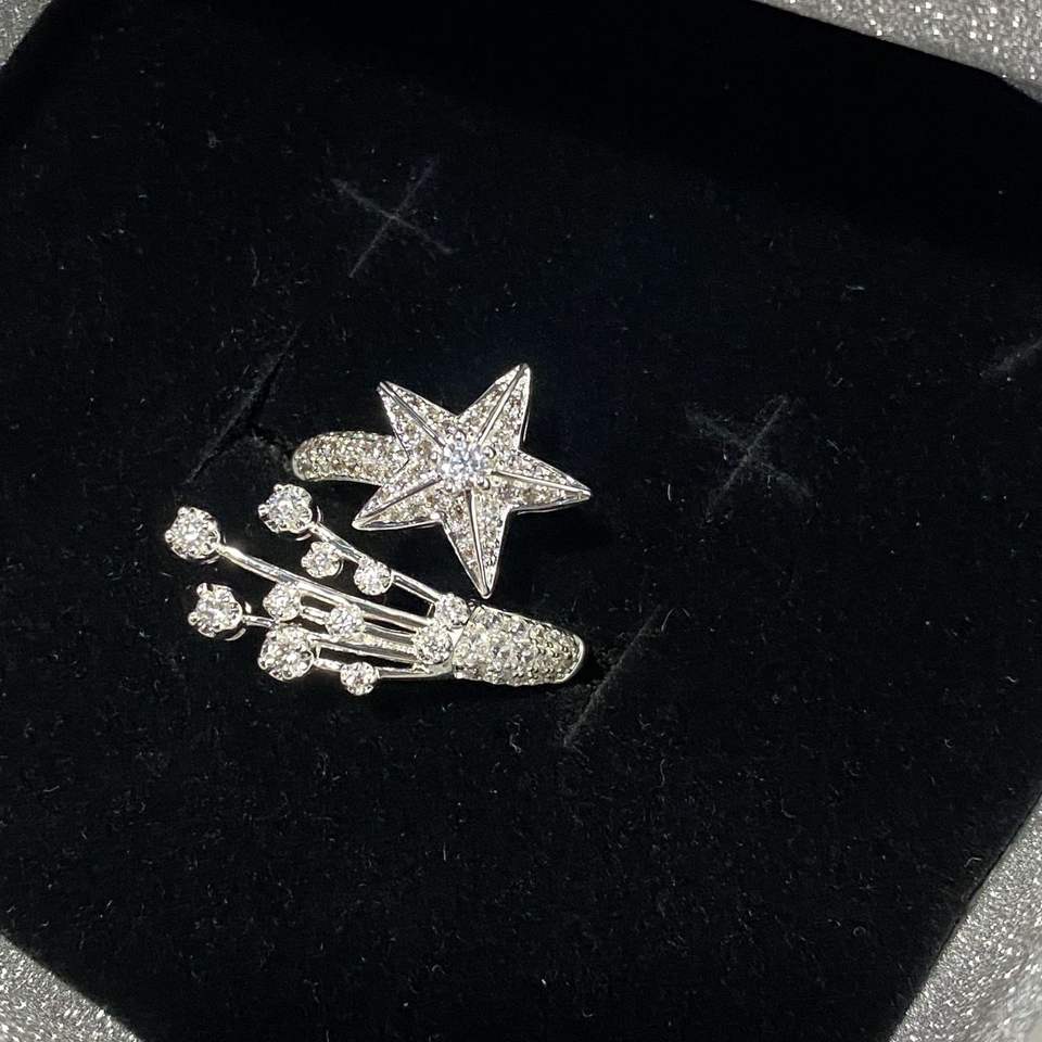 Bague en argent pur S925, luxe léger, exquis, entièrement sertie de diamants, ciel étoilé de la Voie lactée, comète, design de niche haut de gamme, bague tendance