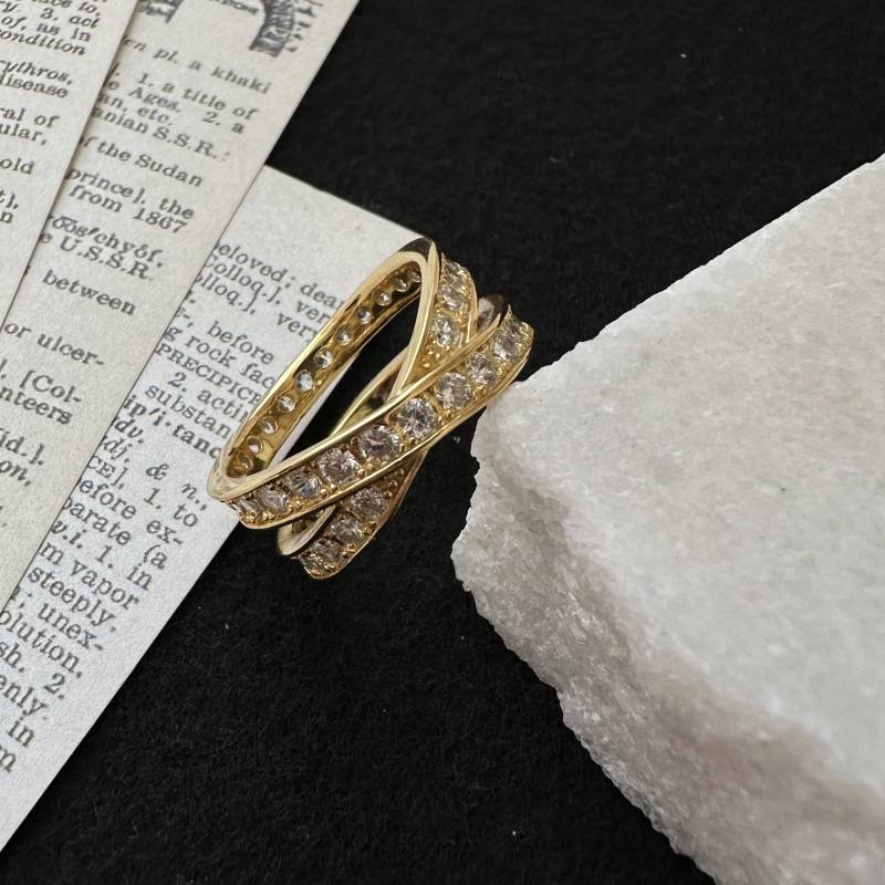 S925 Pure Silver Light Luxury Simple Cross Ring Romantic Vintage Italian Micro Inlaid Niche Design Trendy Micro Inlaid Ring