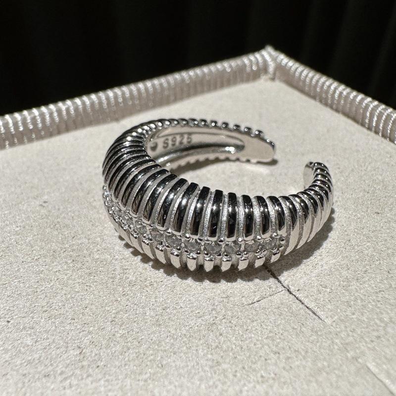 Bague en argent pur S925 micro-incrustée de zircon, design de niche, style léger et vintage, simple, tendance, personnalisée, courbée