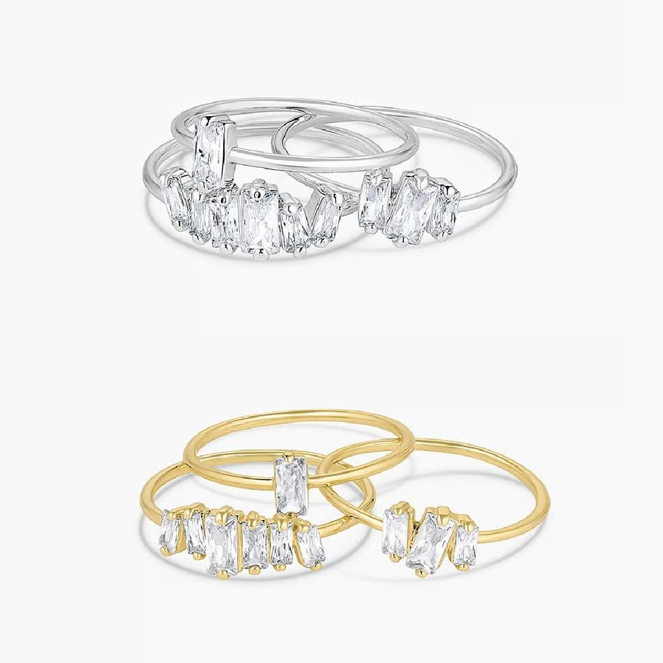 Ensemble de bagues en argent pur S925, style minimaliste, carrés dispersés, bonbons, diamants irréguliers, design unique, polyvalent, bagues empilables