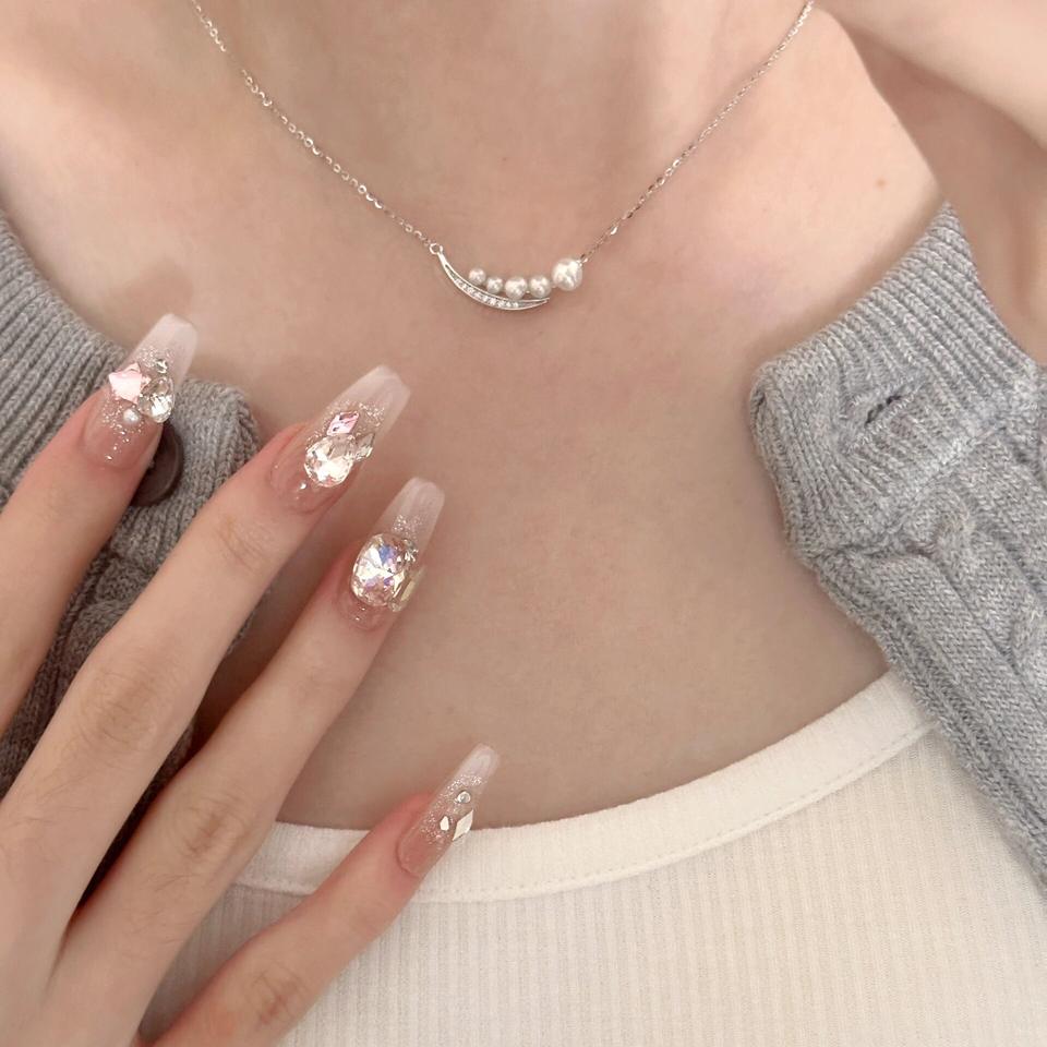 Collier en argent pur S925 pour femmes, texture plissée délicate, chaîne de clavicule en lave en forme de croissant, collier simple, collier de mode