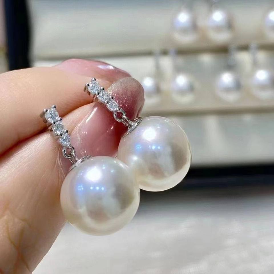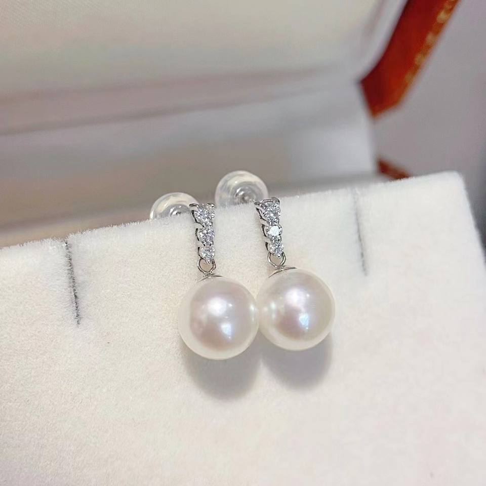 S925 Pure Silver Natural Pearl Dangle Earrings with Frosted Gold-Plated Korean Style Wholesale with Gift Box