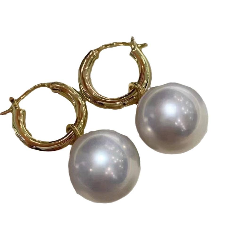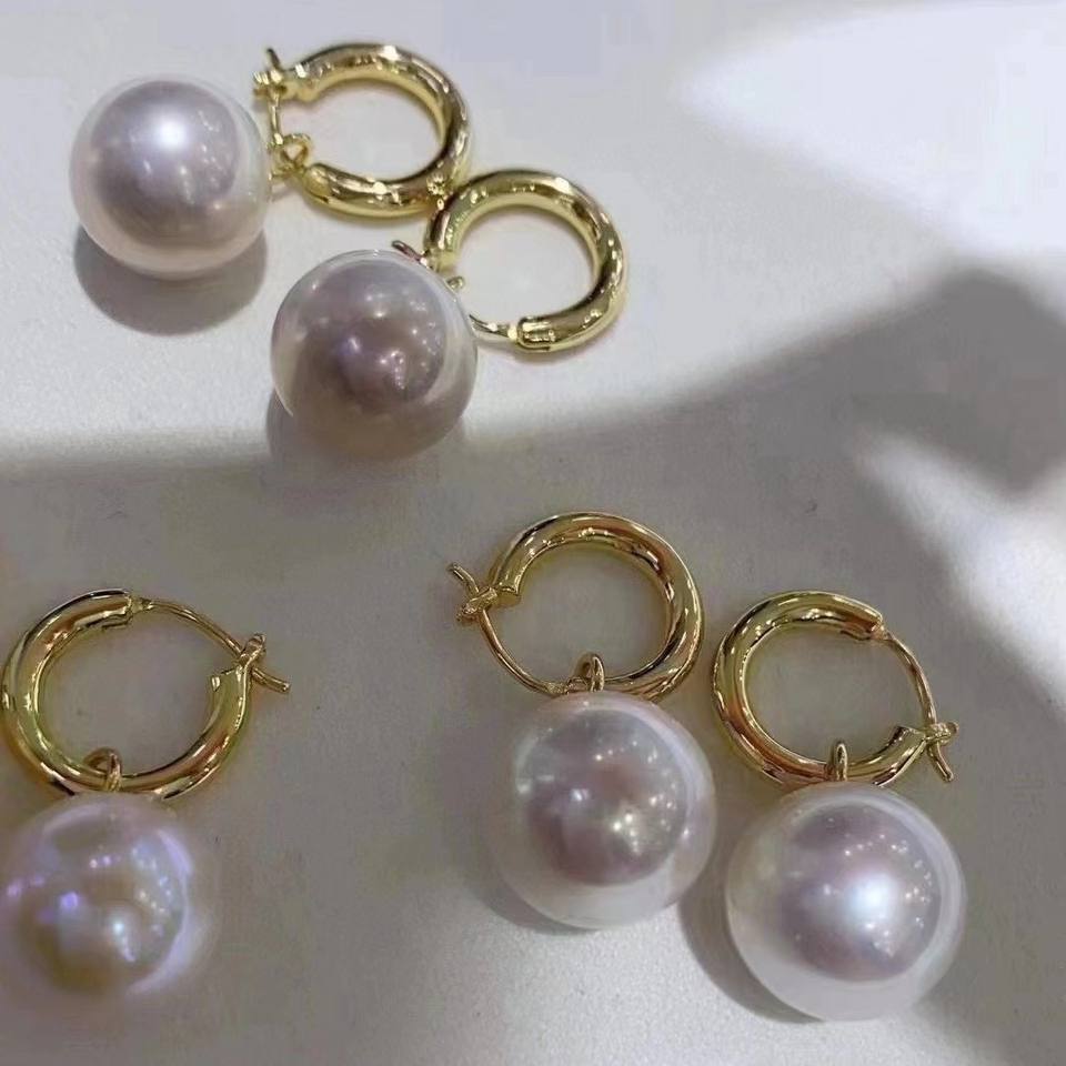 Boucles d'oreilles pendantes en argent pur S925 avec perle naturelle, crochet d'oreille haut, 10-11 mm, presque sans défaut, luxe léger, polyvalent pour femme, en direct