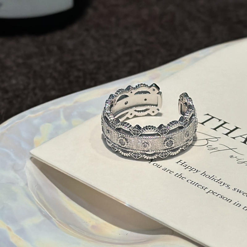 Bague en argent pur S925, style palais, dentelle, simple, antique, vintage, à ouverture, design de niche, motif géométrique, avec pierre naturelle