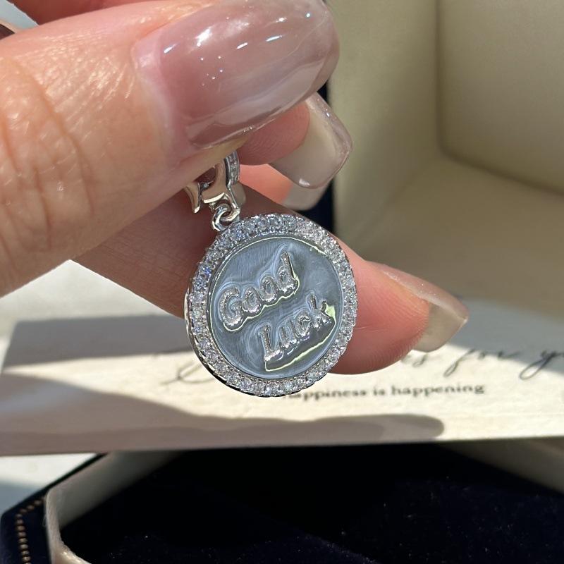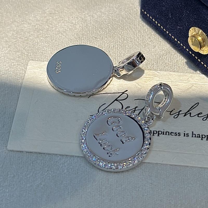 S925 Pure Silver Round Pendant with Vintage Letter Design Handmade Simple and Fashionable Niche Jewelry Gold Main Material