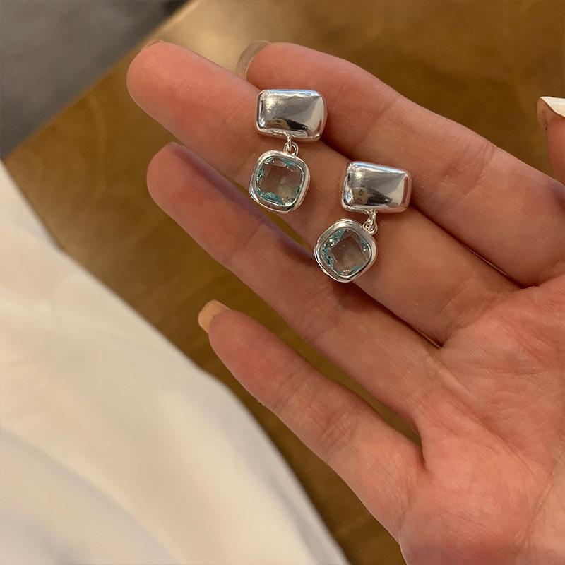 Boucles d'oreilles en argent pur S925, bleu océan, bloc de sucre, avec un effet de fraîcheur bleu eau claire, or 18 carats, avec un tempérament simple et original