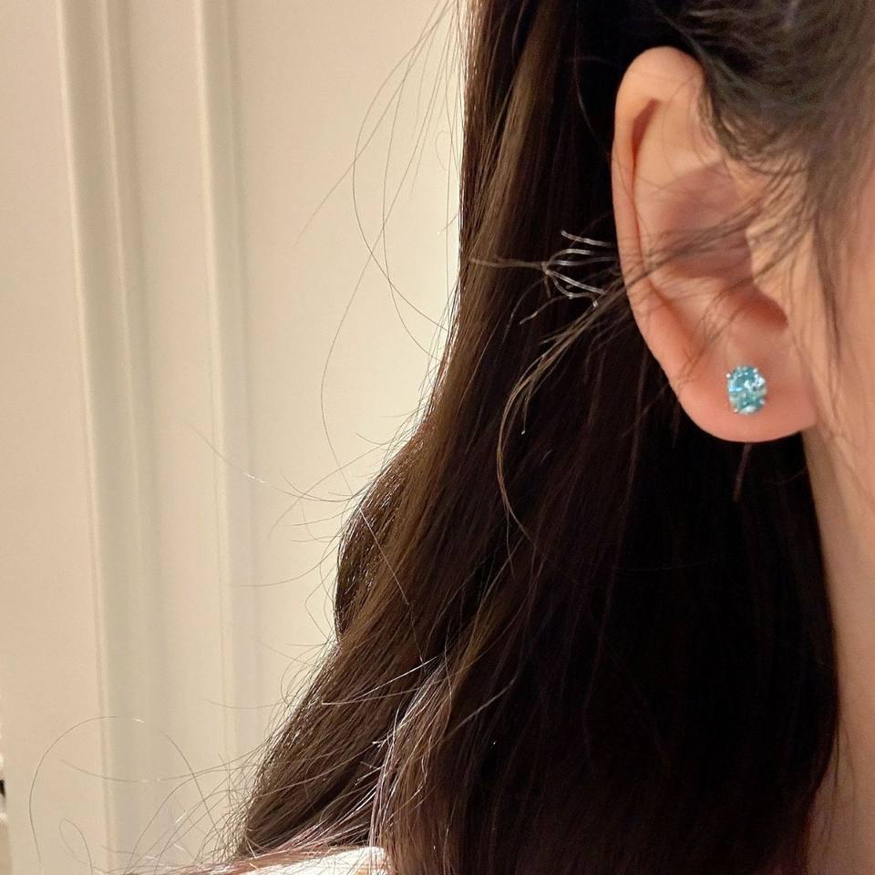 Boucles d'oreilles S925 en argent pur, bleu océan, avec diamants ovales délicats, détachables, à clip, bijoux tendance pour femmes