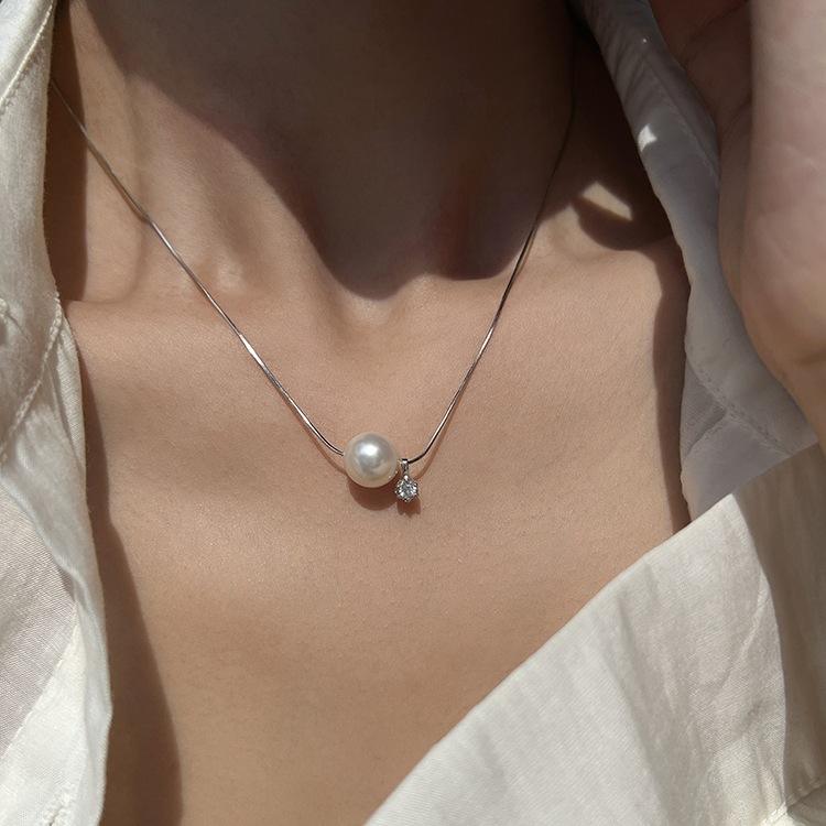 Collier en argent pur S925, simple, luxueux, rétro, avec boule brossée, tendance, perle œil de chat CNC, chaîne de clavicule, vente en gros