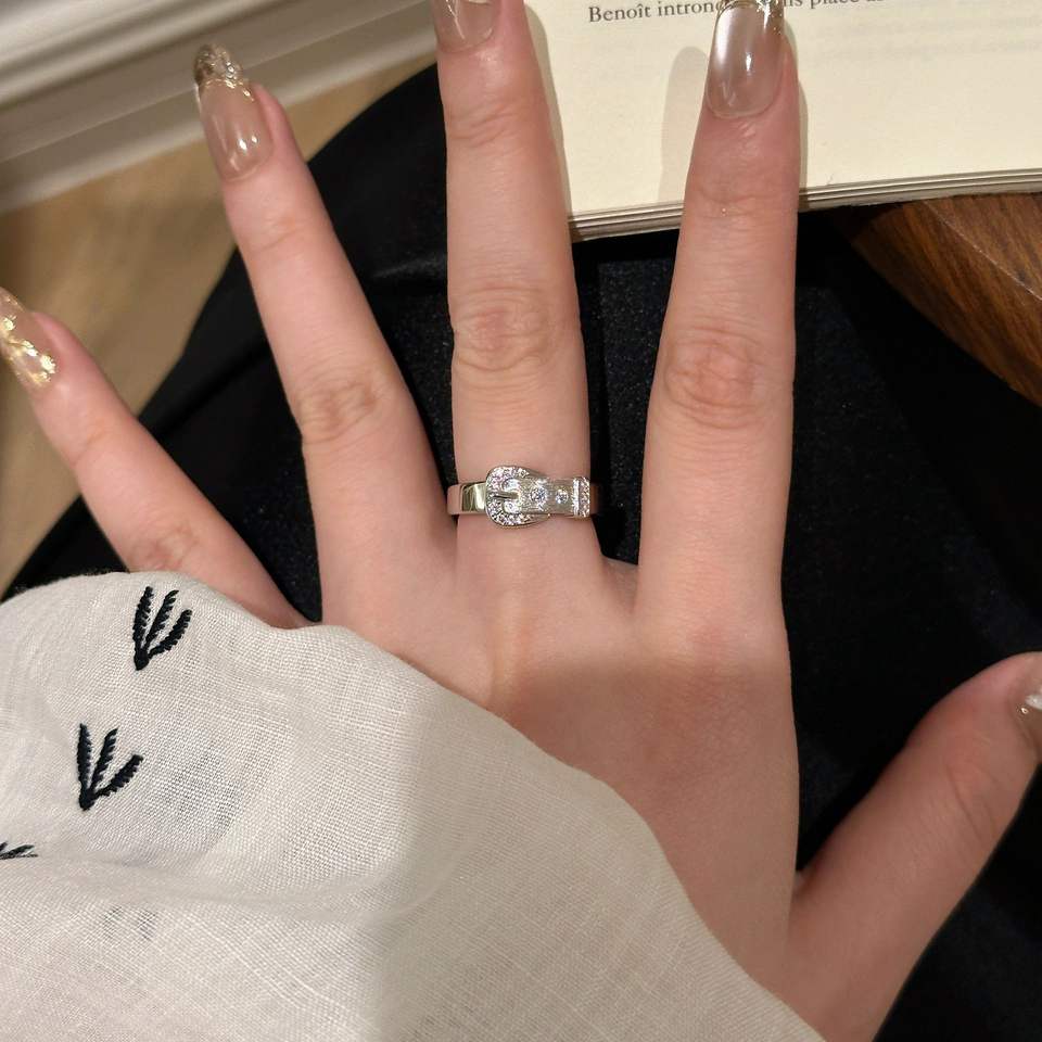 Bague de ceinture en argent pur S925 avec incrustation de diamants brossés, design de ceinture unique tendance et luxueux, diamant taillé