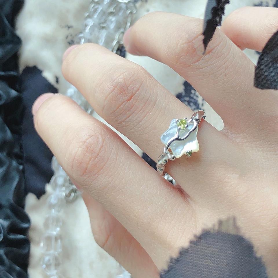 Bague en argent pur S925 avec étoile blanche, coquille de papillon, zircon pour femmes, style haut de gamme, niche irrégulière, style froid et cool avec forme de croix