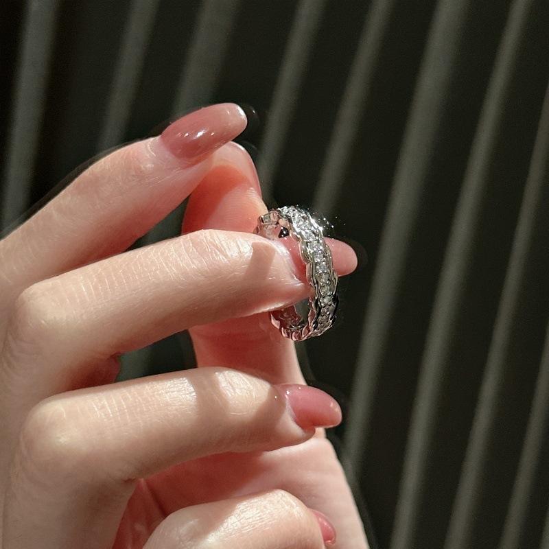S925 Pure Silver Zircon Woven Ring Simple Fashionable Open Mouth Design Niche Light Jewelry Box Personalized Stackable Inlay