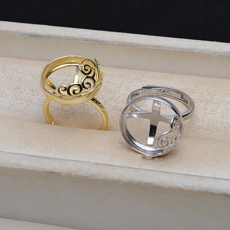 S925 Silver 4881 DIY Accessory Pendant Earring Holder Set 16.5mm Pearl Horse Shell Flat Bottom Empty Beads Jewelry for Making