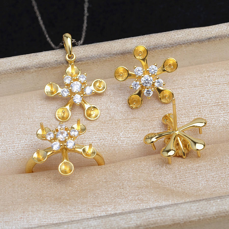 S925 Silver 5-Bead Snowflake Set DIY Pearl 6-7.3 Multi Bead Ring & Earnail Pendant Jewelry Findings 5756