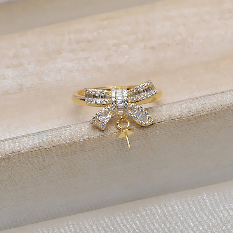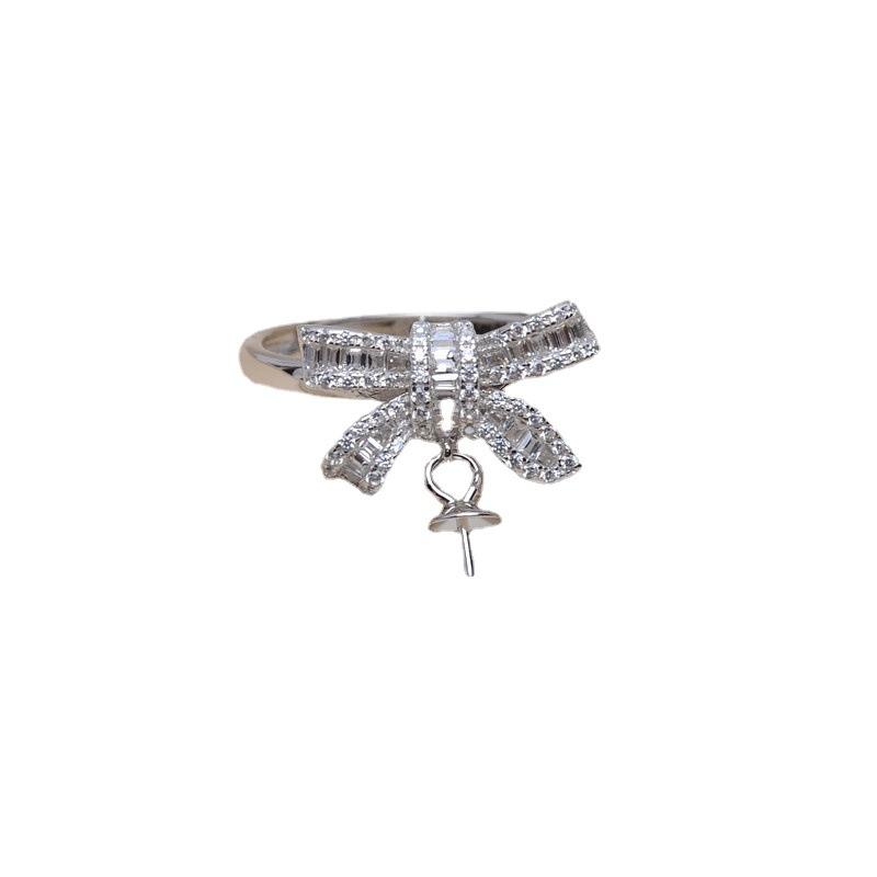 Anneau ouvert réglable en argent S925 avec nœud papillon, support vide pour perle de 8-10 mm, accessoire JG5177 - Apprêts et composants de bijouterie