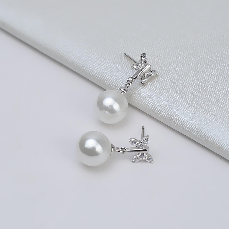 S925 Silver Big Pearl Trendy Female Earpin Earrings-Personalized Fashion Accessories 10-14mm DIY Empty Tray Earnail