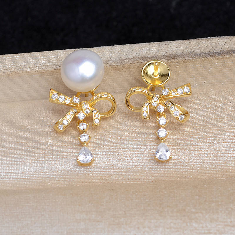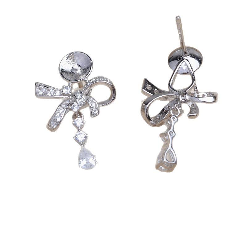 Support d'oreille en argent Wenchi S925 avec nœud, 10-12 mm, accessoires de bricolage pour bijoux en perles, semi-finis, 15669, composants de bijoux