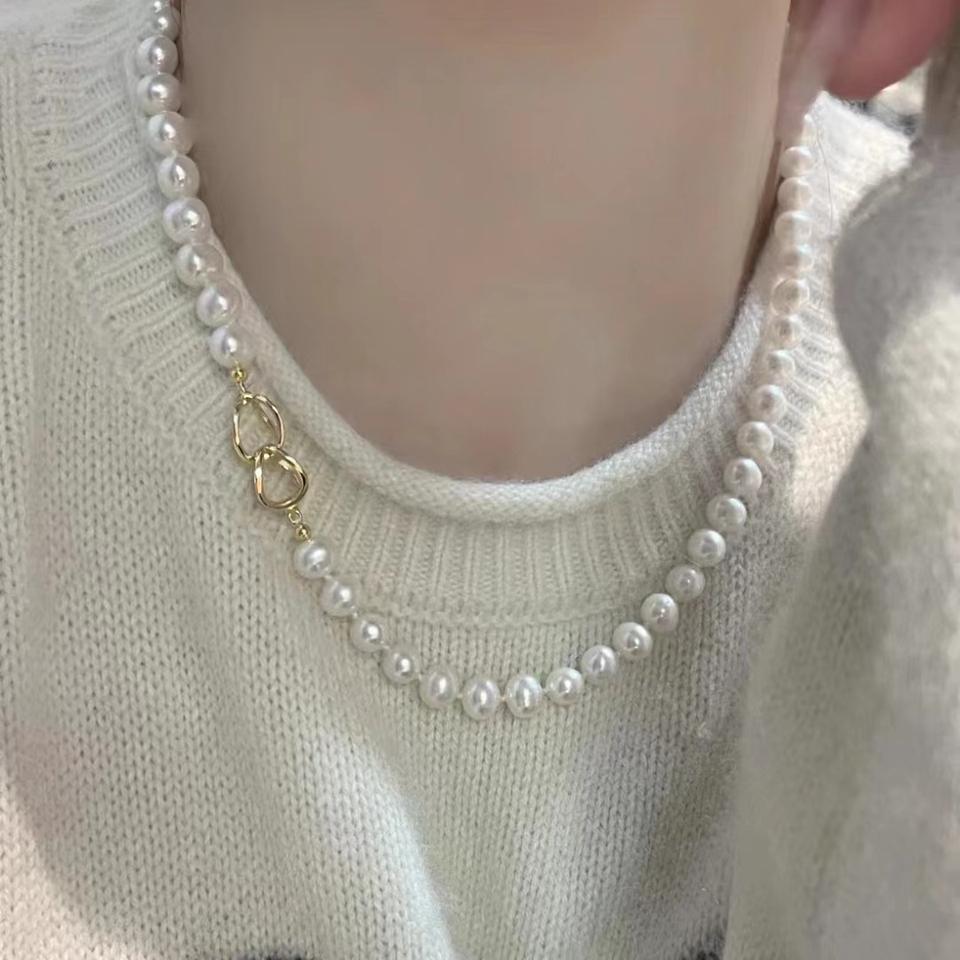S925 Silver Broken Silver Pearl Necklace with Luxury Light Niche Collarbone Chain Strong Round Neck Chain Freshwater Pearl