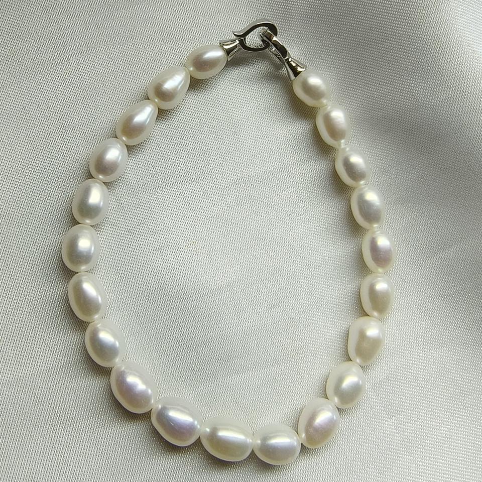 Bracelets élégants en cercle pour petites filles, boucles en argent S925, perles d'eau douce de haute qualité en forme de goutte d'eau de riz de 5 à 6 mm