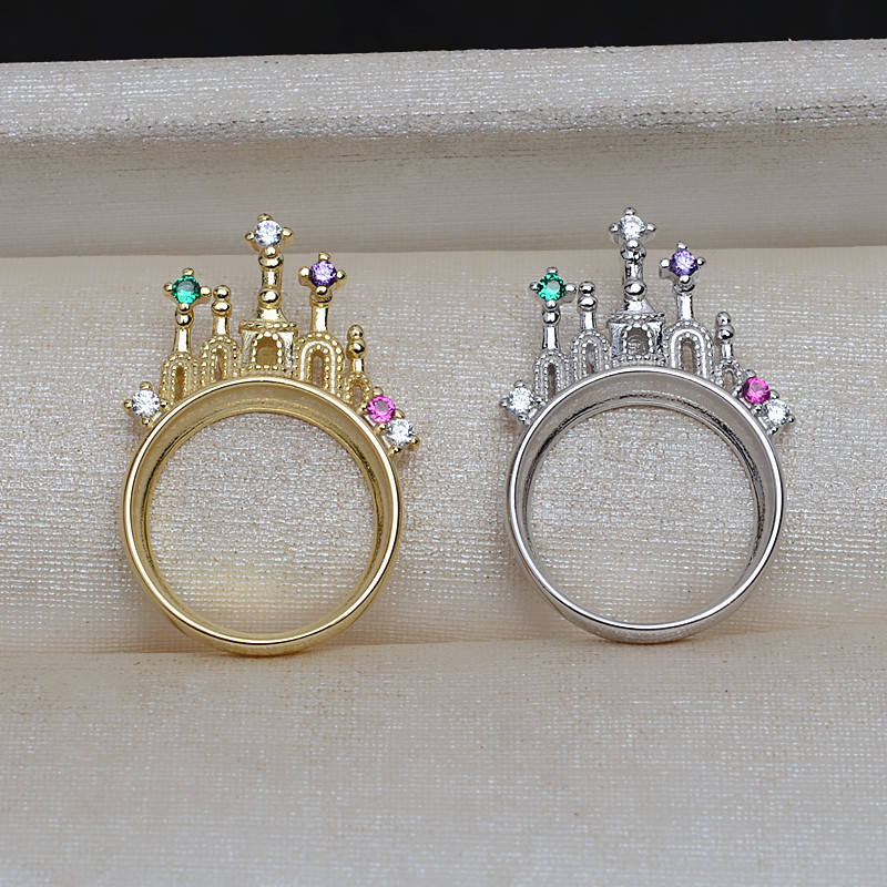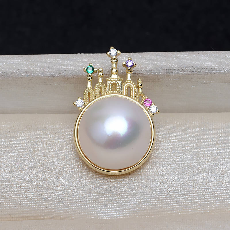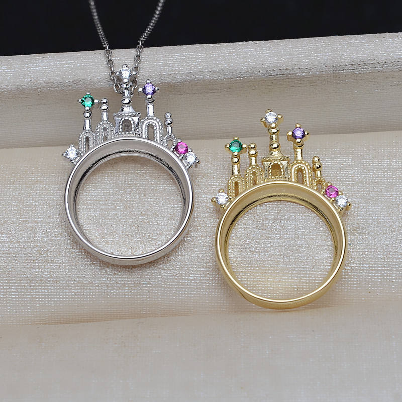 Pendentif Château en Argent S925 13,5 mm, Accessoires DIY en Marbre, Plateau Vide Semi-fini 4006, Pendentifs et Breloques en Perle