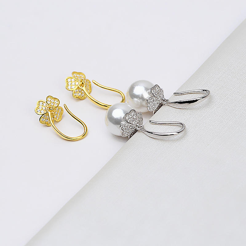 Ensemble de pendentifs et de boucles d'oreilles en argent S925 avec chaîne de chat, accessoires pour cheveux de bébé, perles de 8-9 mm, composants de support vides