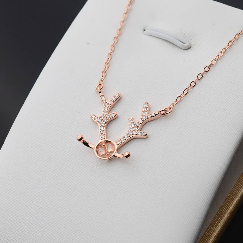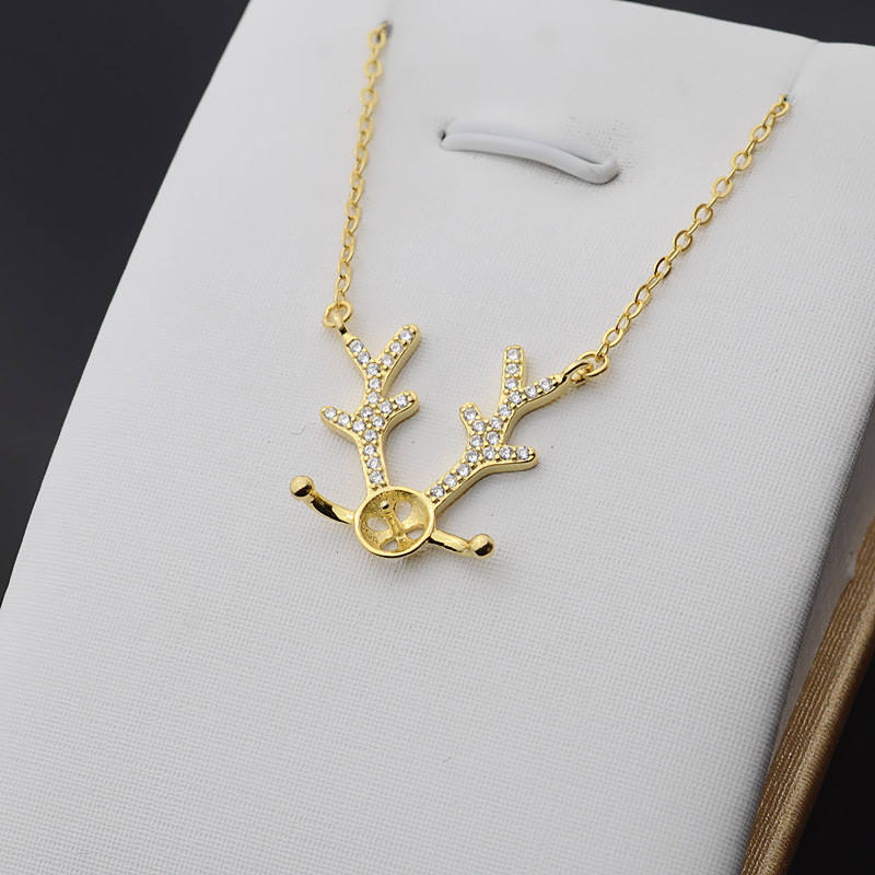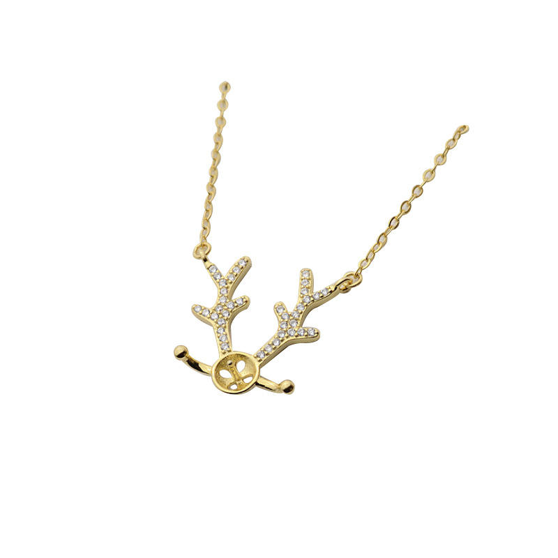 S925 Silver DIY Accessories Elk Horn 8-9 Pearl Set Chain with Zircon Clavicle Pendant Necklace-Empty Support for Tide 345