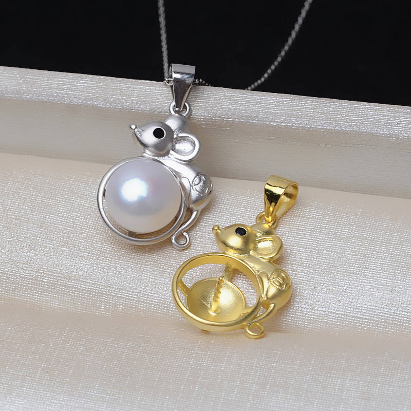 Wenchi S925 Silver DIY Accessories Women's Zodiac Rat Pendant 10-11 Pearl Empty Holder 3261 Baby Hair Necklace Jewelry Findings