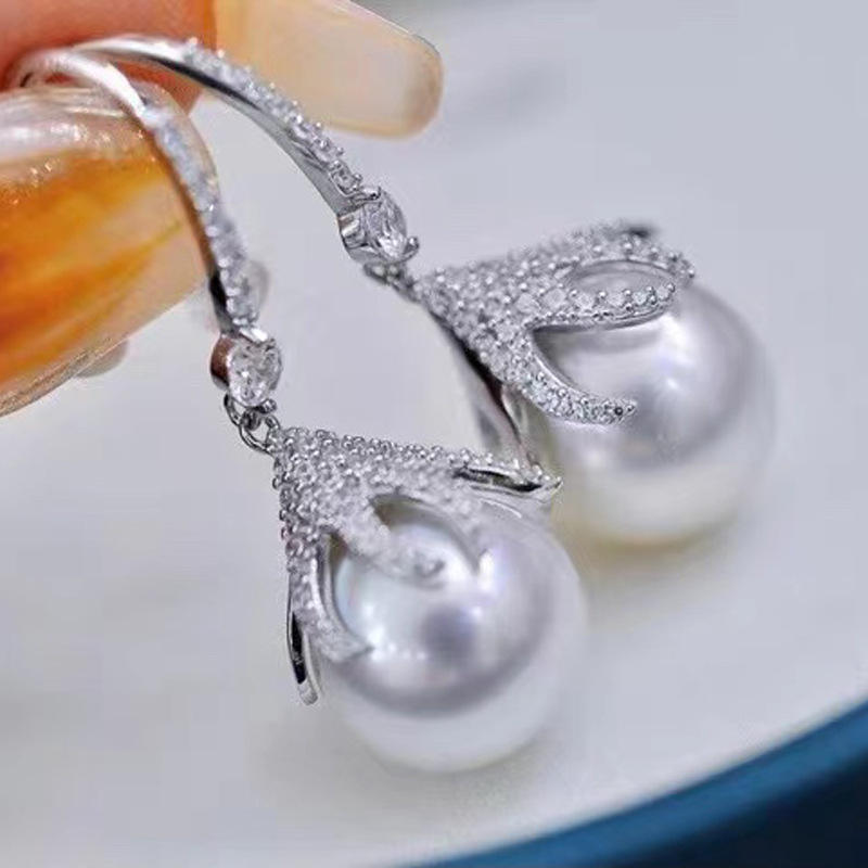 S925 Silver DIY Pearl Accessories 10-12mm Round Bead 21618 Hollow Nail Bracket Concealer with Ear Hook for Earrings