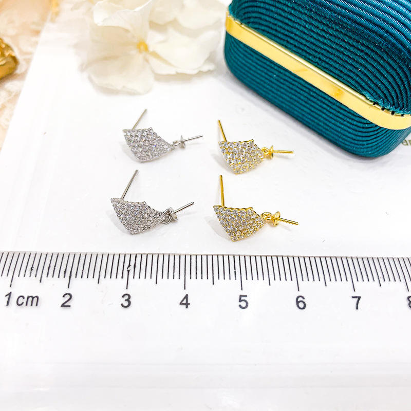 WENCHI S925 Silver DIY Pearl Accessories 2021 Fashion Silver Jewelry Earrings with 8-11mm Round Beads and Empty Tray Model 11266