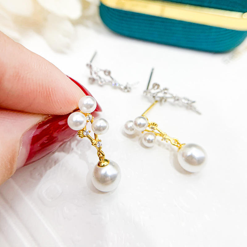 S925 Silver DIY Pearl Accessories 21608 Multi-Strand Pearl Earrings with 3-10mm Beads Hollow Support for Custom Jewelry Design