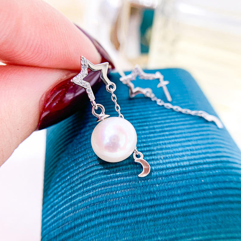 S925 Silver DIY Pearl Accessories 8-11mm Round Beads & Empty Support Star Moon Earrings 21160 Fashion Drop Earrings with Earnail