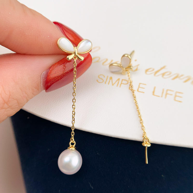 Accessoires en argent S925 pour la création de bijoux, plateau vide en argent avec motif papillon, pour boucles d'oreilles en perles de 7-10 mm, article 20878
