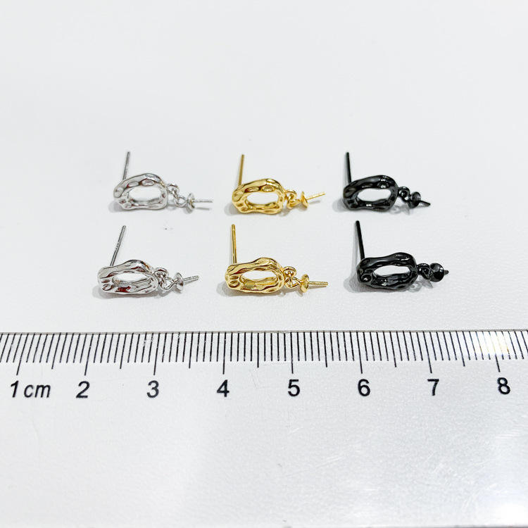 Accessoires en argent S925 pour la création de bijoux, support vide en argent noir pour boucles d'oreilles avec perles rondes de 9 à 15 mm, boucles d'oreilles pendantes tendance - 22063