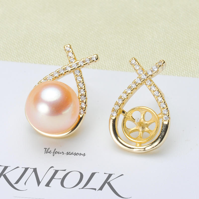 S925 Silver DIY Pearl Accessories Empty Holder Concealer Pendant for Fashion Stud Earrings 9290