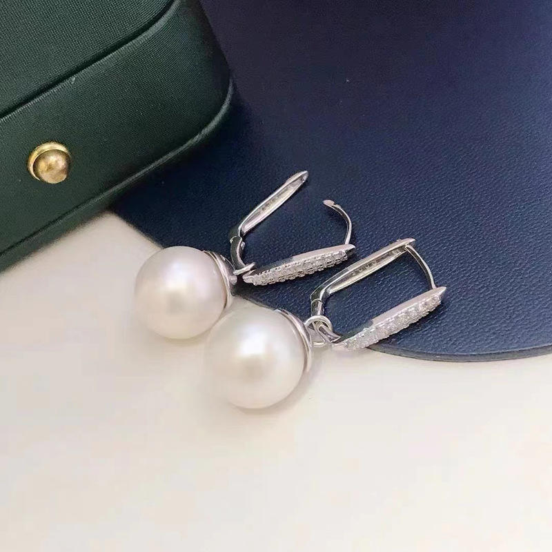 S925 Silver DIY Pearl Accessories Fashion Silver Jewelry Ear Buckle with 9-12mm Round Beads and Empty Tray 21739