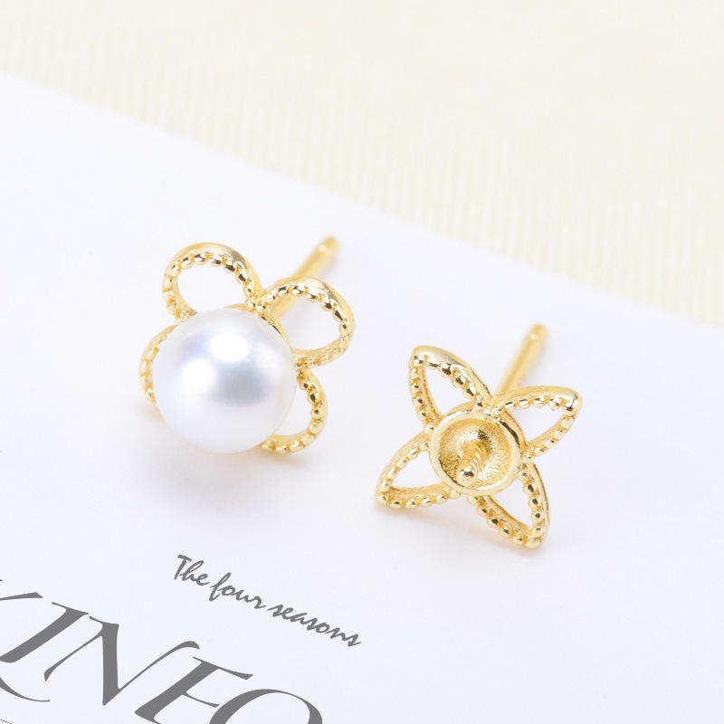 S925 Silver DIY Pearl Accessories Fashion Stud Earrings with Empty Tray and 4-5mm Round Beads 20379