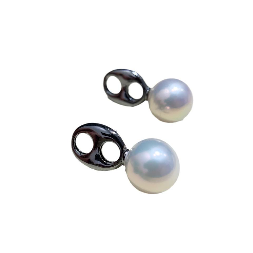 S925 Silver DIY Pearl Accessories Pig Nose Jewelry Earrings with 9-13mm Round Beads 22037