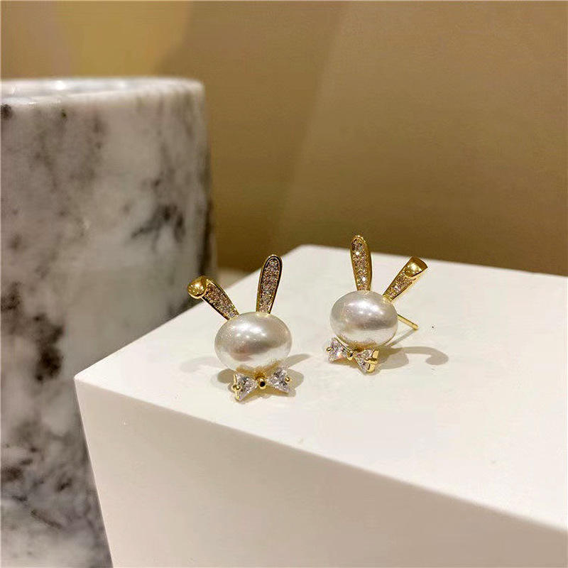 Boucles d'oreilles lapin en argent S925 WENCHI avec perles rondes de 7-8 mm, plateau vide, origine Chine, modèle 11360