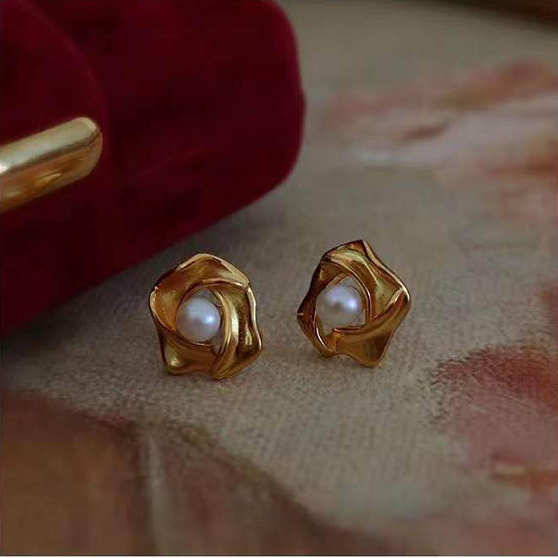 S925 Silver DIY Pearl Accessories Rose Silver Jewelry Earrings with 5-6mm Round Beads 20634 Empty Tray Elegant Fashion Studs