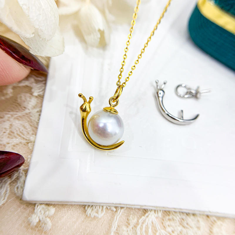 Pendentif en argent S925 avec perle DIY, suspension en forme d'escargot, avec perles rondes de 8 à 10 mm, pendentif en jade pour collier, 30727