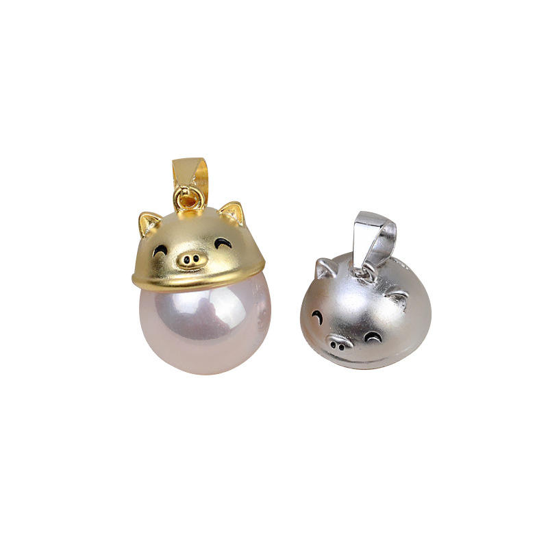 Accessoire de pendentif en argent S925 à faire soi-même, petit collier pour bébé à tête de cochon avec 10-11 perles et fournitures de perlage en agate de jade